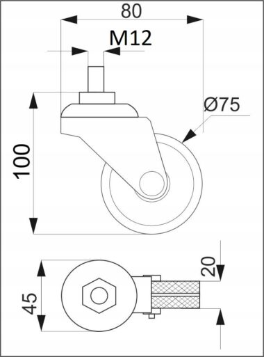 - Wymiary mocowania: gwint M12
