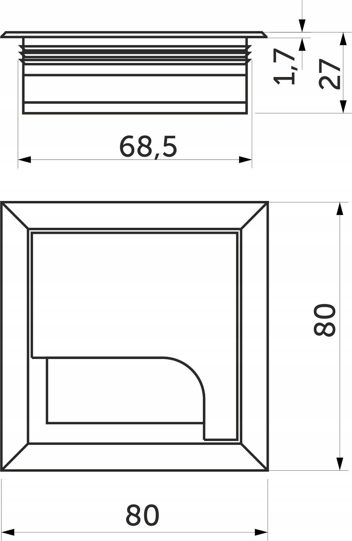 Przelotka przepust kablowy kwadratowy 80×80 mm aluminium