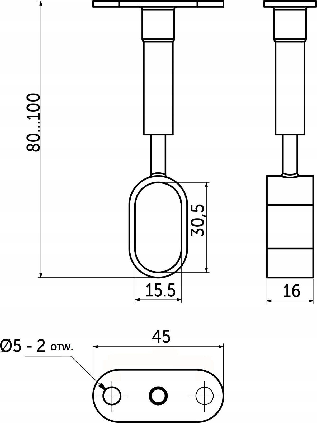 Uchwyt dystansowy regulacja do drążka owalnego 30×15 przelotowy czarny AKS