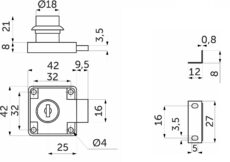 ZAMEK meblowy NA KLUCZ cyfrowy z perforacją do mebli szafki KWADRATOWYZAMEK meblowy NA KLUCZ cyfrowy z perforacją do mebli szafki KWADRATOWY
